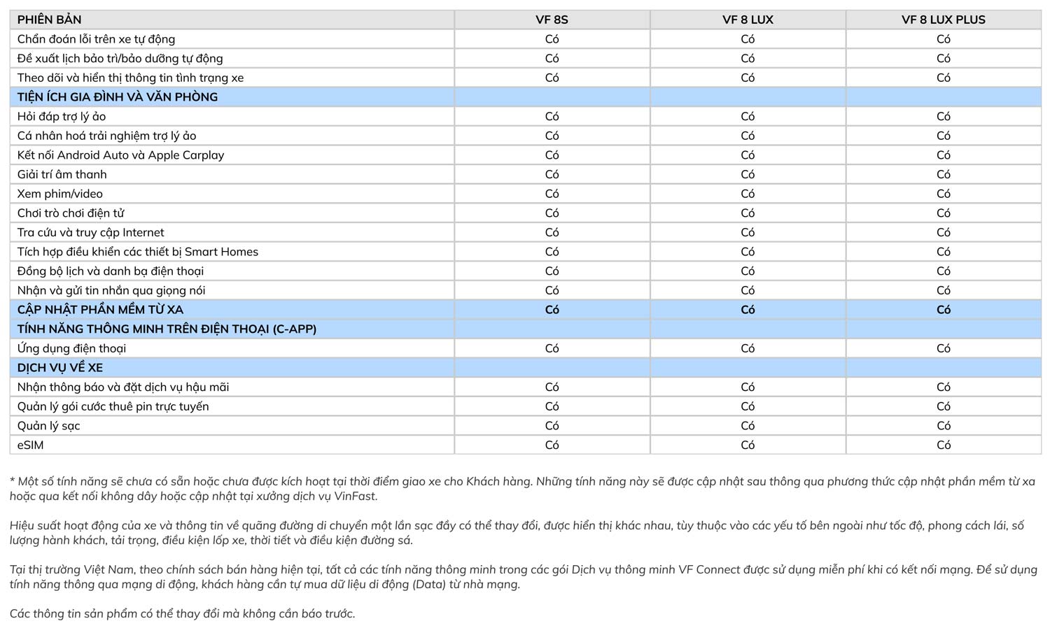 Khách hàng đặt cọc VF 8 Lux và VF 8 Lux Plus trước 31/07/2024 sẽ được miễn phí sạc 02 năm. Người sở hữu nhà Vinhomes được miễn phí gửi xe 02 năm tại các bãi đỗ xe của Vinhomes; và được hỗ trợ lên tới 10 triệu đồng và cấp 900.000 VNĐ/xe/tháng chi phí sạc cho cư dân chọn sạc tại nhà từ nay cho tới hết ngày 01/07/2026.